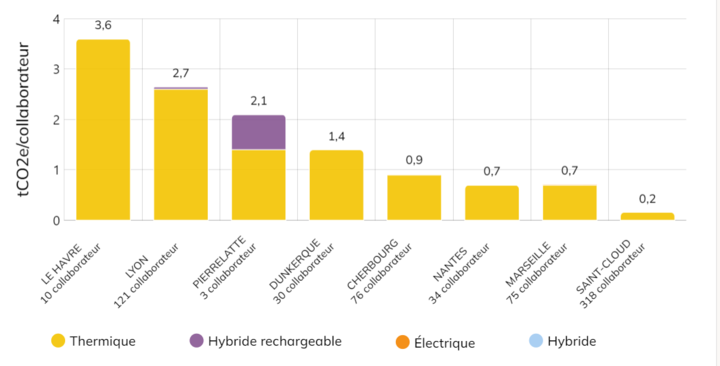Par exemple, ici, sur ce bilan carbone anonymisé, une approche analytique avec une intensité carbone par collaborateur et par site de l’entreprise.